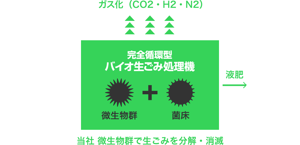 - 生ゴミ処理機(オープン型)を設置し、当社微生物群を導入。