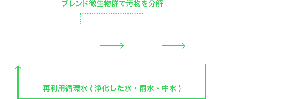 - 曝気槽にオリジナルブレンドの微生物群を投入。